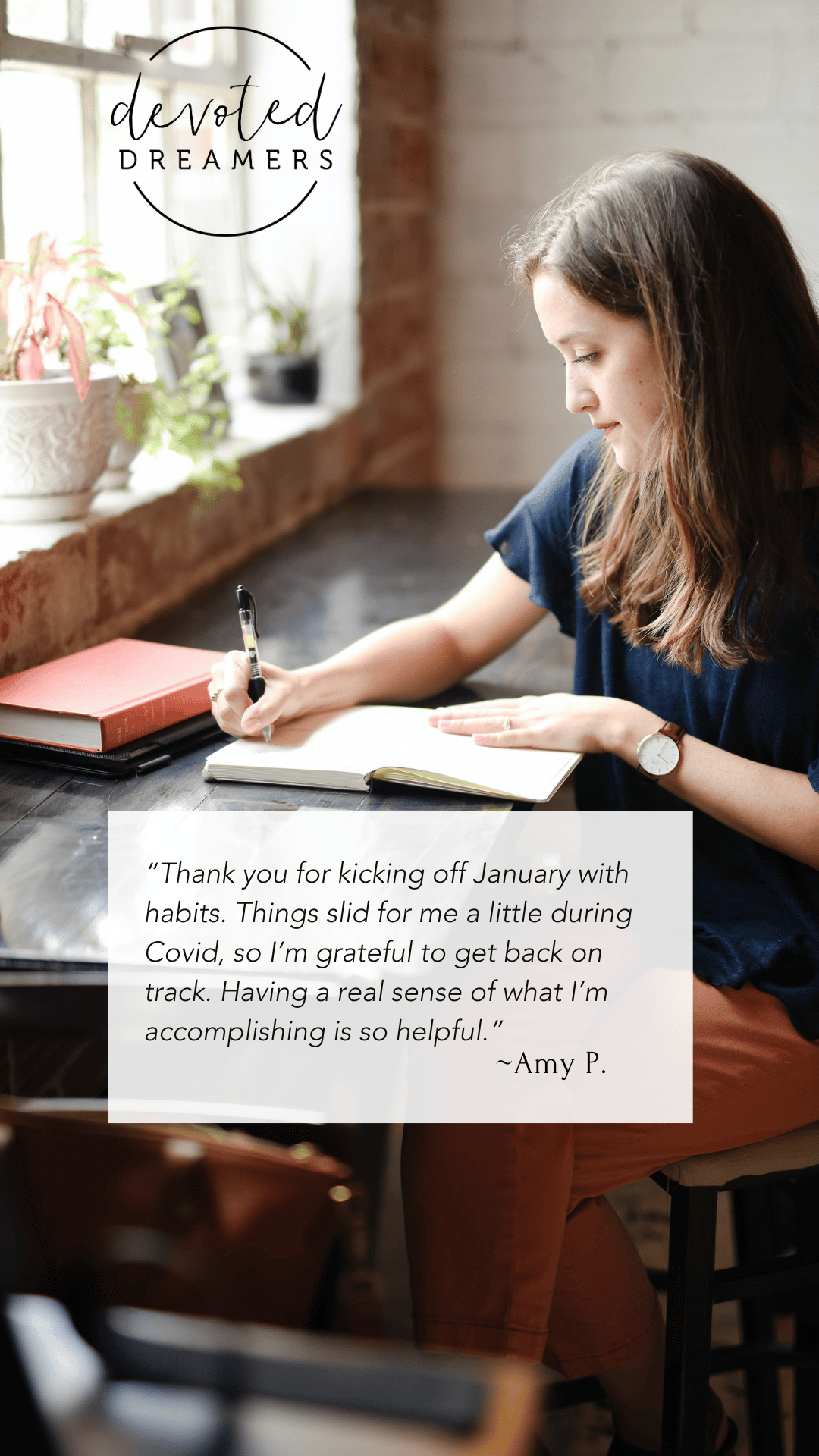 Download the Devoted Dreamers Habit Tracker for real-time feedback on your monthly progress.